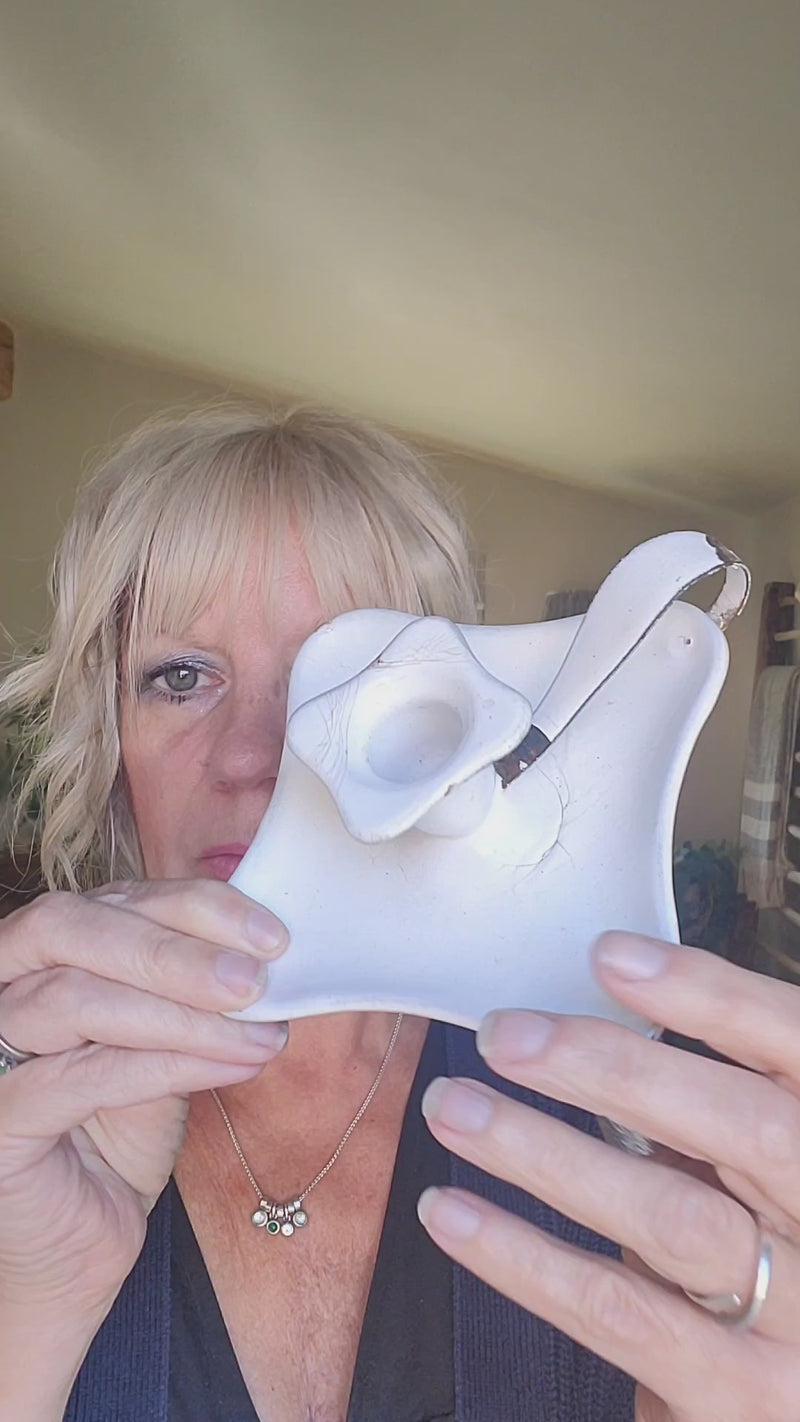 With its white enamelled finish and just the right amount of vintage wear, it's sure to bring a smile to your face every time you light a candle!
