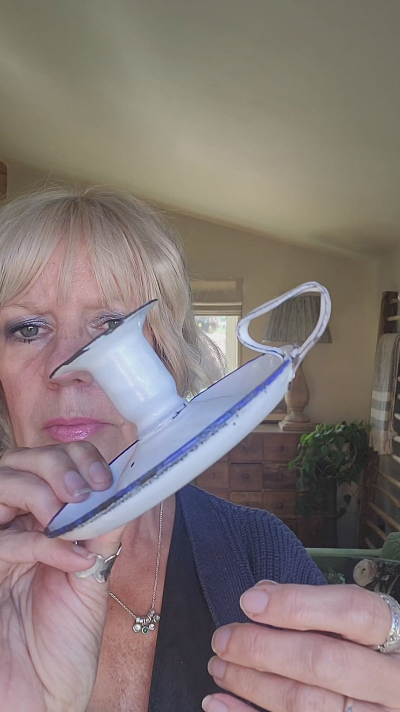 Add a touch of whimsy to your home with the French enamel candle holder.