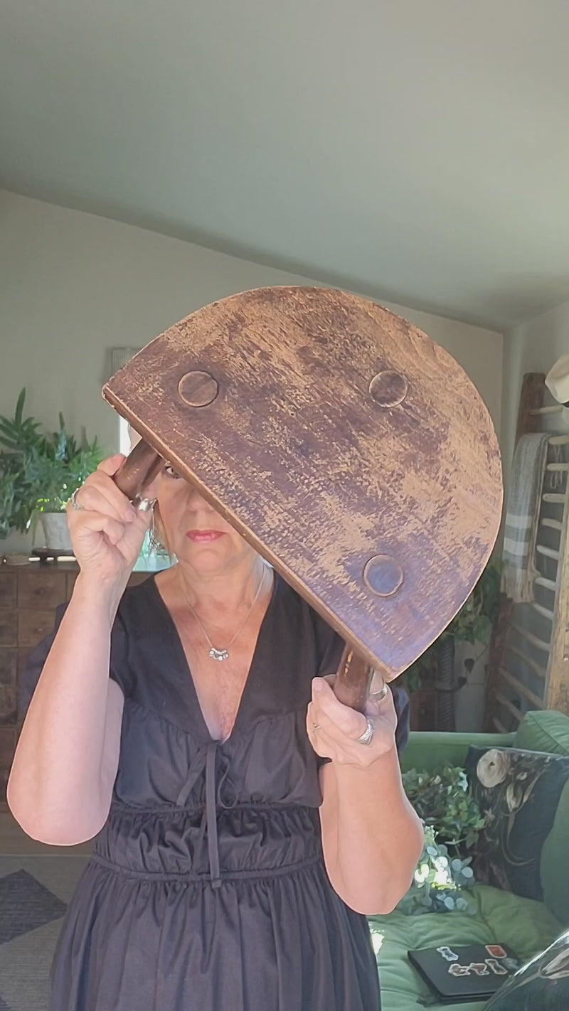Rustic Vintage French Tripod Demi-lune Milking Stool
